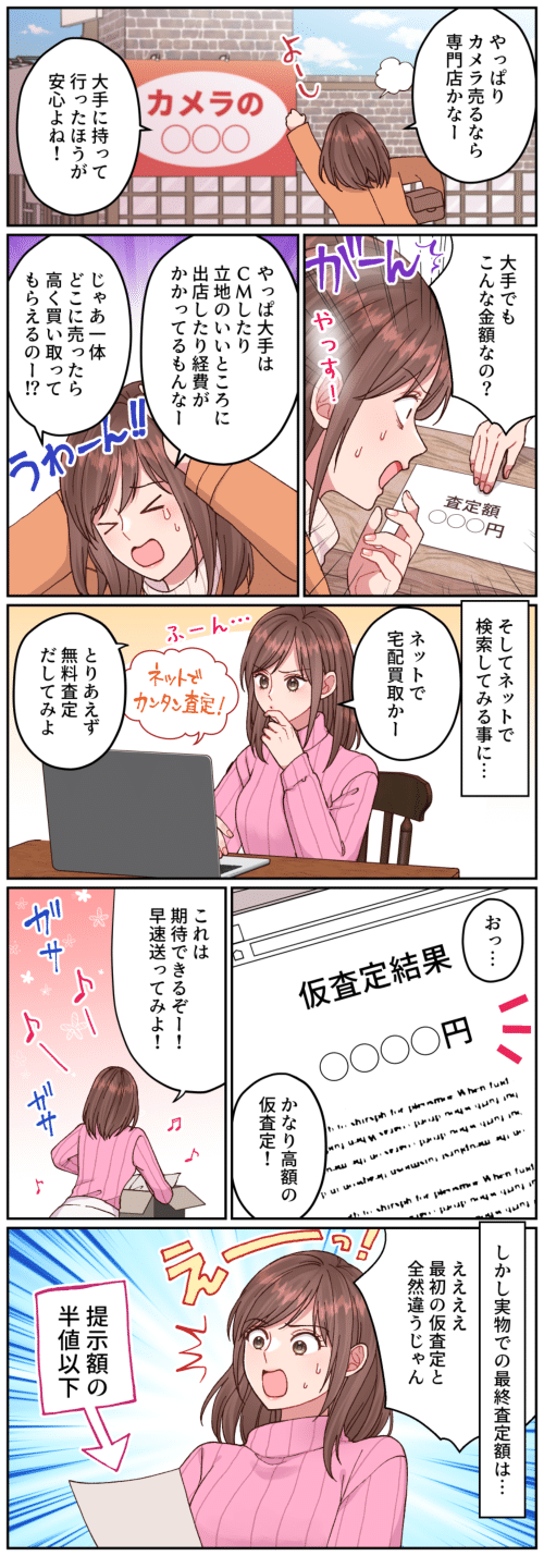 大手買取店では、よい立地に出店し固定費が高くなってしまいます。なのでどうしても買取額が安くなりがちです。